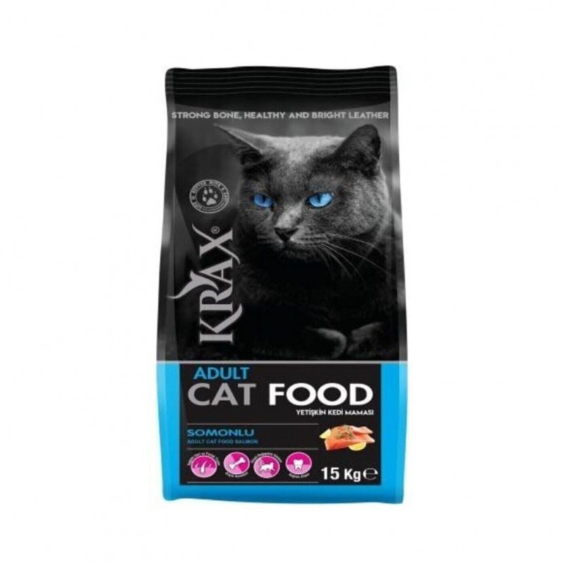 Krax Somonlu Kedi Maması 15 Kg KRAX SOMONLU YETİŞKİN KEDİ MAMASIİÇİNDEKİLER: İŞLENMİŞ HAYVANSAL PROTEİN, BUĞDAY, MISIR, HAYVANSAL YAĞ, BONKALİT,İŞLENMİŞ BALIK PROTEİNİ, MISIR GLUTENİ, KURUTULMUŞ ŞEKER PANCARI, BALIK YAĞI, TAVUKCİĞER AROMASI, BALIK AROMASI, TUZ, KURUTULMUŞ BİRA MAYASI, TAURİN. MİNERALLER:KALSİYUM, FOSFOR, SODYUM, İYOT, ÇİNKO, BAKIR, POTASYUM KLORÜR, DEMİR, SELENYUM.VİTAMİNLER: VIT.A, VIT.D, VIT.E, VIT.C, VIT.B1 - B2 - B3 (NIACIN) - B6 - B12 - B7 (BIOTIN) - B9(FOLIC ACID), VIT.K, CHOLINE, CALCIUM PANTOTETAN.BESİN DEĞERLERİHam Protein % 26Ham Yağ % 9Ham Kül % 8Ham Selüloz % 2,5BESLEYİCİ İLAVELER Vitamin E-IU/kg 15000Vitamin D3-IU/kg 1000Vitamin E-mg/kg 150Vitamin C-mg/kg 200Taurin mg/kg 1000BESLENME TALİMATI: Mamaya, tabloda belirtilen miktarlarda başlayın. Ancak daha sonrakedinizin iştah ve kondisyon durumuna göre verilecek miktarları değiştirebilirsiniz. Kedinizinbesinsel ihtiyaçları, yaşına, ırkına, büyüklüğüne, aktivite derecesine ve çevre koşullarına görefarklılık gösterebilir. Beslenme tablosu günlük mama miktarına göre düzenlenmiştir. Bu tabloyurehber olarak kediniz için uygun olan miktarı günlük en az 2 öğün olmak üzere öğün sayısınagöre bölerek kedinizi besleyebilirsiniz. Daima mama ile birlikte taze ve temiz su bulundurun.Tüm diyet değişiklikleri kademeli olmalıdır. Ürünü serin ve kuru bir ortamda saklayınız.