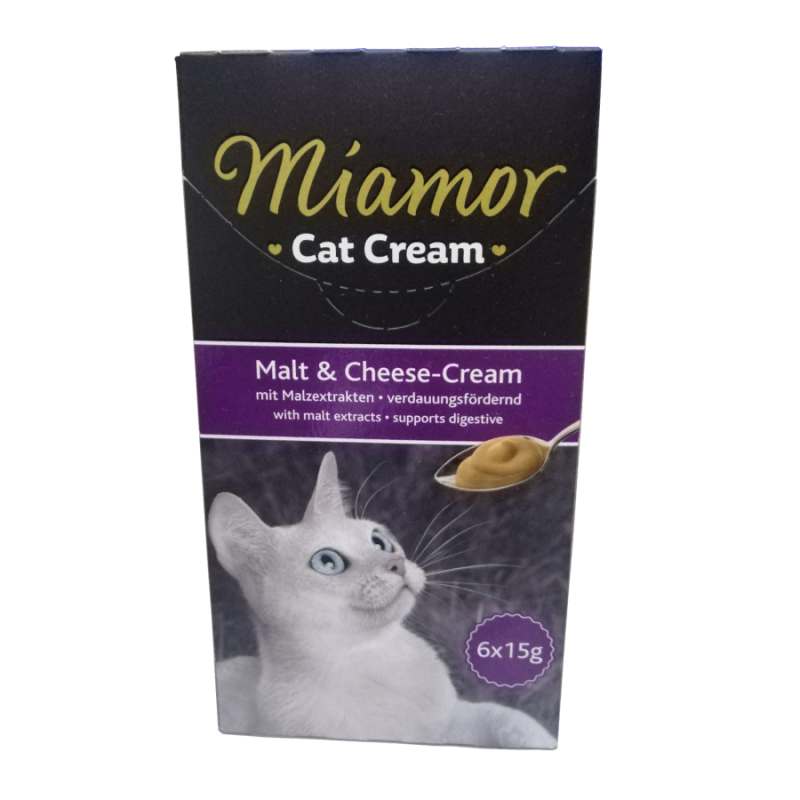 Miamor Cream Malt-Peynir Kedi Ödülü 6x15 Gr Miamor Cream – Yetişkin kediler için tamamlayıcı mama - Malt mayası ve Peynir Mayası özü içeren leziz krema – Tüy topaklarının atılmasına ve sindirime yardımcıdır.